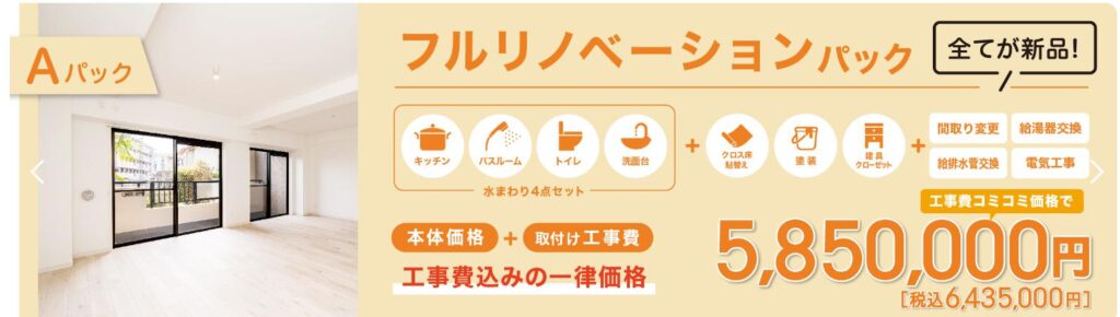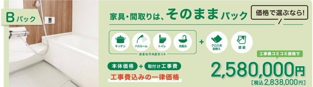 不動産会社が売主の場合はBパックをリノベーションと呼んで販売している会社が多いのですが